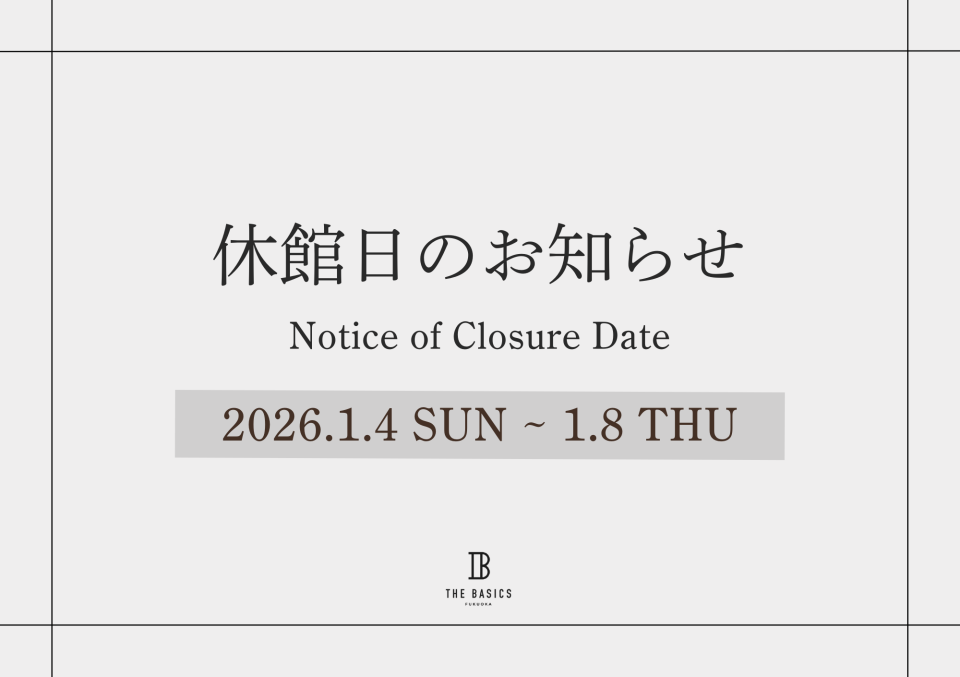 We would like to inform you that THE BASICS FUKUOKA will be closed on the following dates for the annual inspection.